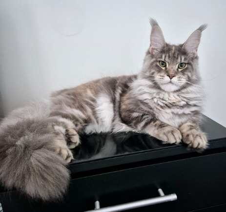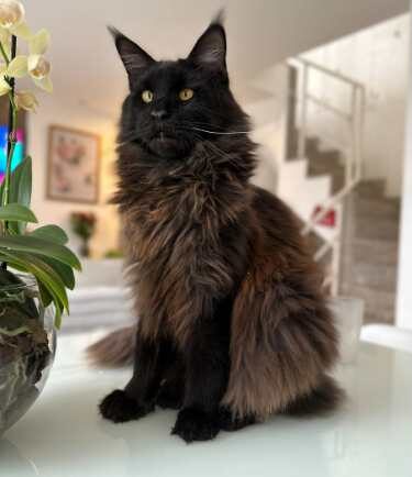 Muito admirado e desejado pelos amantes de gatos de raça pura no País, o sucesso do Maine Coon é fácil de ser explicado. “Ele ocorre principalmente pela combinação do temperamento maravilhoso como aspecto selvagem de seu olhar, expressão e pontas das orelhas que lembram um lince, as chamadas lynxtips”, comenta Glória, que, em 2006, fundou, junto a alguns amigos criadores, a Associação da Raça Maine Coon (Amacoon), clube especializado que, dois anos depois, iniciou um trabalho forte na divulgação da raça, o que fez a popularidade do Maine Coon aumentar. “As pessoas valorizam o fato de ser um gato grande, bonito, exuberante e, ao mesmo tempo, dócil”, conta Eder. “Além de ser um companheiro inteligente, brincalhão e bem sociável, que se adapta bem com a família, crianças e com os outros pets da casa, o Maine Coon exibe porte grande, corpo robusto, tamanho imponente e sua cauda costuma ter número de vértebras maior do que os outros gatos, geralmente medindo por volta de até 45 cm contra ao redor de 25 cm das outras raças”, complementa Letícia Parreira Martins Correa, do gatil Donna Agatha, de Campos dos Goytacazes, RJ.