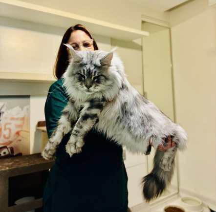Glória afirma ainda que é preciso saber fazer o banho do Maine Coon ou então não se vai conseguir retirar a oleosidade da pelagem completamente. “Por sorte há profissionais na área que ministram cursos excelentes”, afirma a criadora.