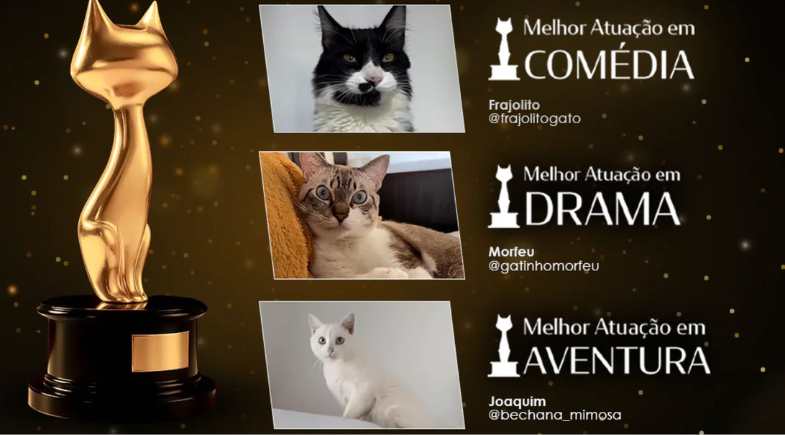 Na categoria Comédia, o vencedor foi Frajolito (@frajolitogato), que conquistou os jurados com seu timing natural e carisma espontâneo. Já o prêmio de Melhor Atuação em Drama ficou com Morfeu (@gatinhomorfeu), reconhecido pela intensidade e expressividade que emocionaram a Academia.