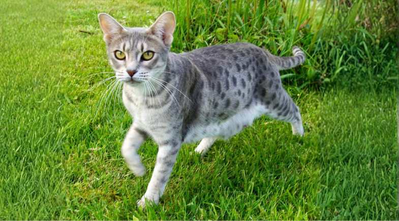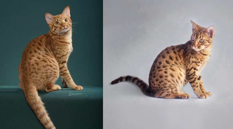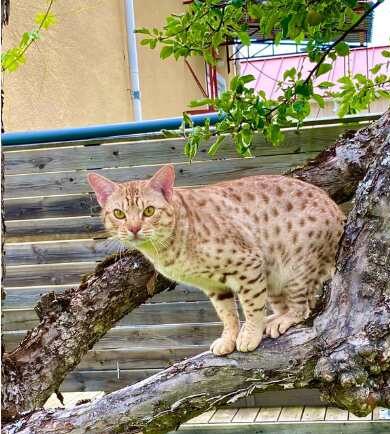 Sua aparência com pintas de jaguatirica é puro charme e seu temperamento é de um gato amoroso e de forte ligação com o dono